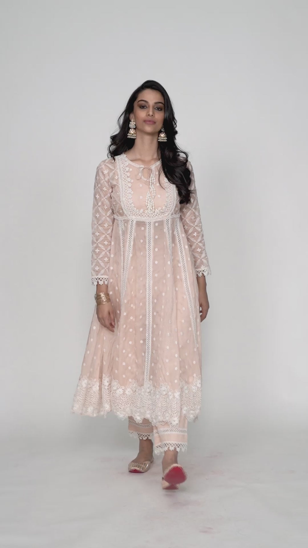 Vanessa Banarsi Off White Anarkali Kurta Set