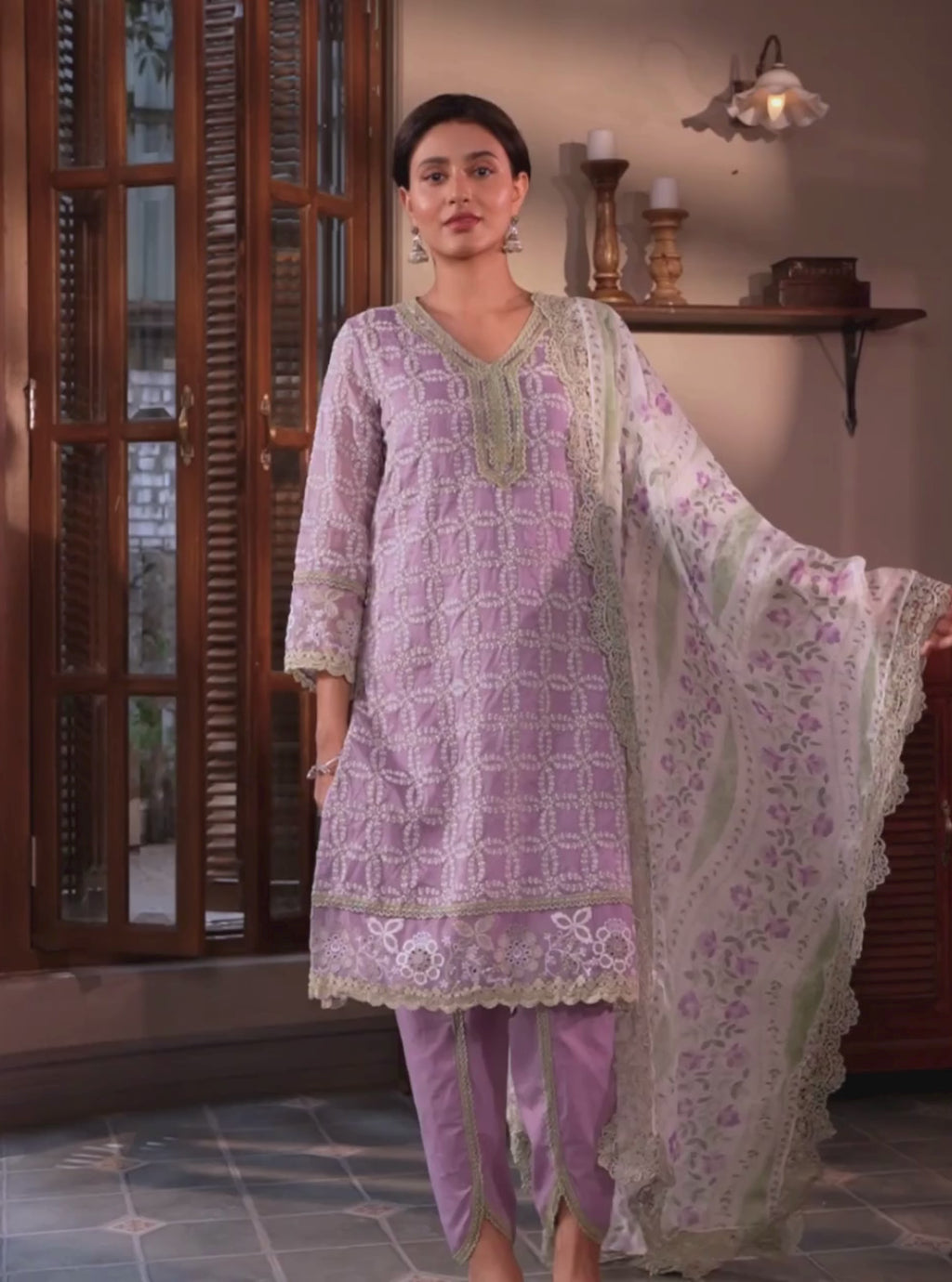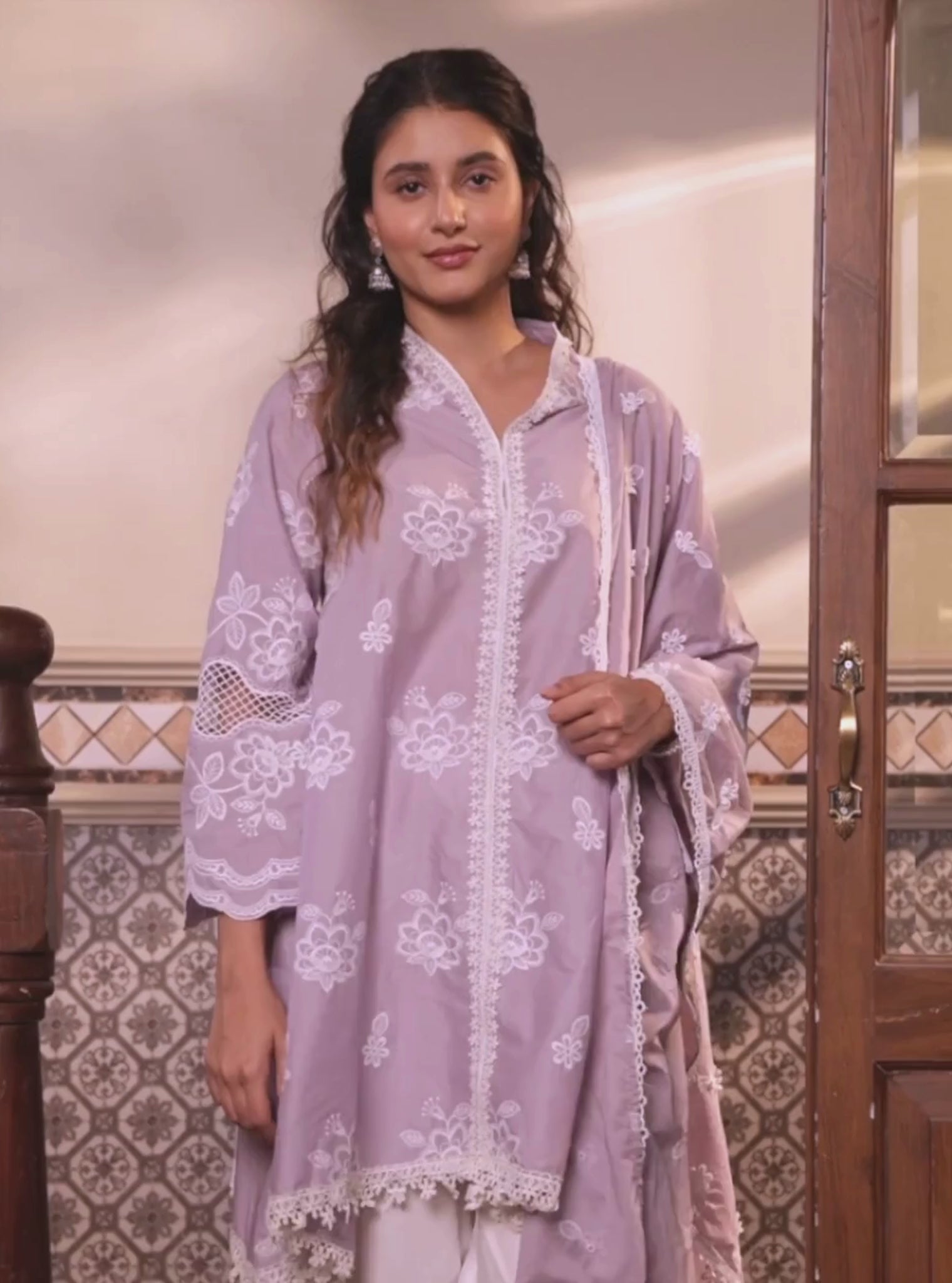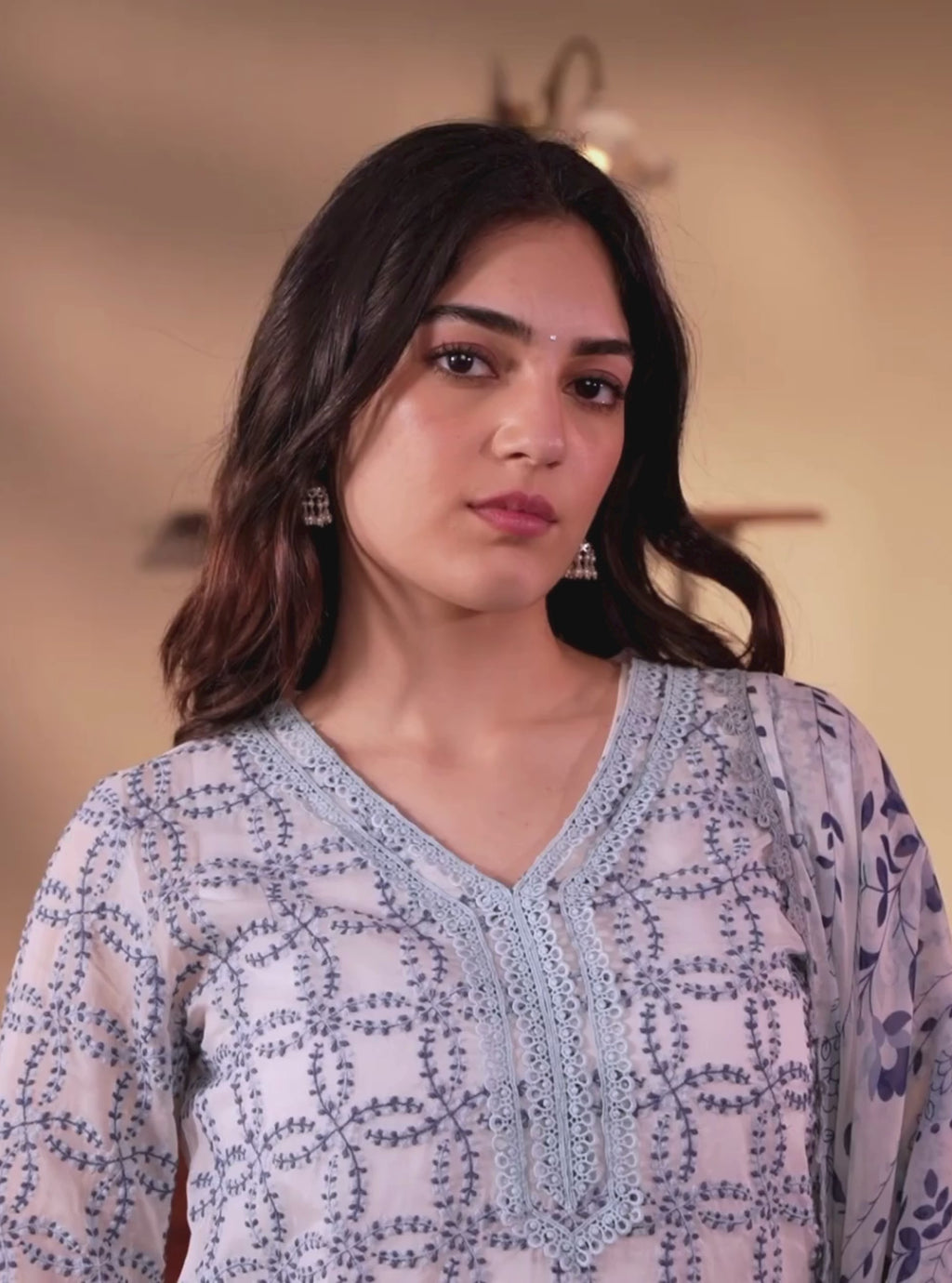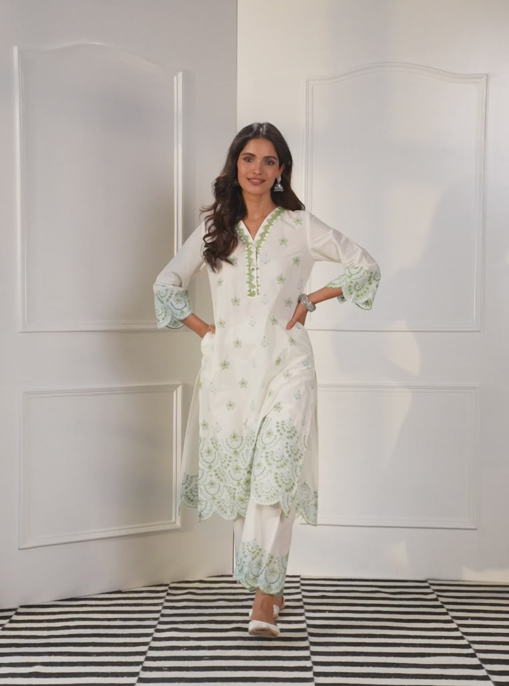 Ayla Supima Cotton Off White Anarkali Kurta Set