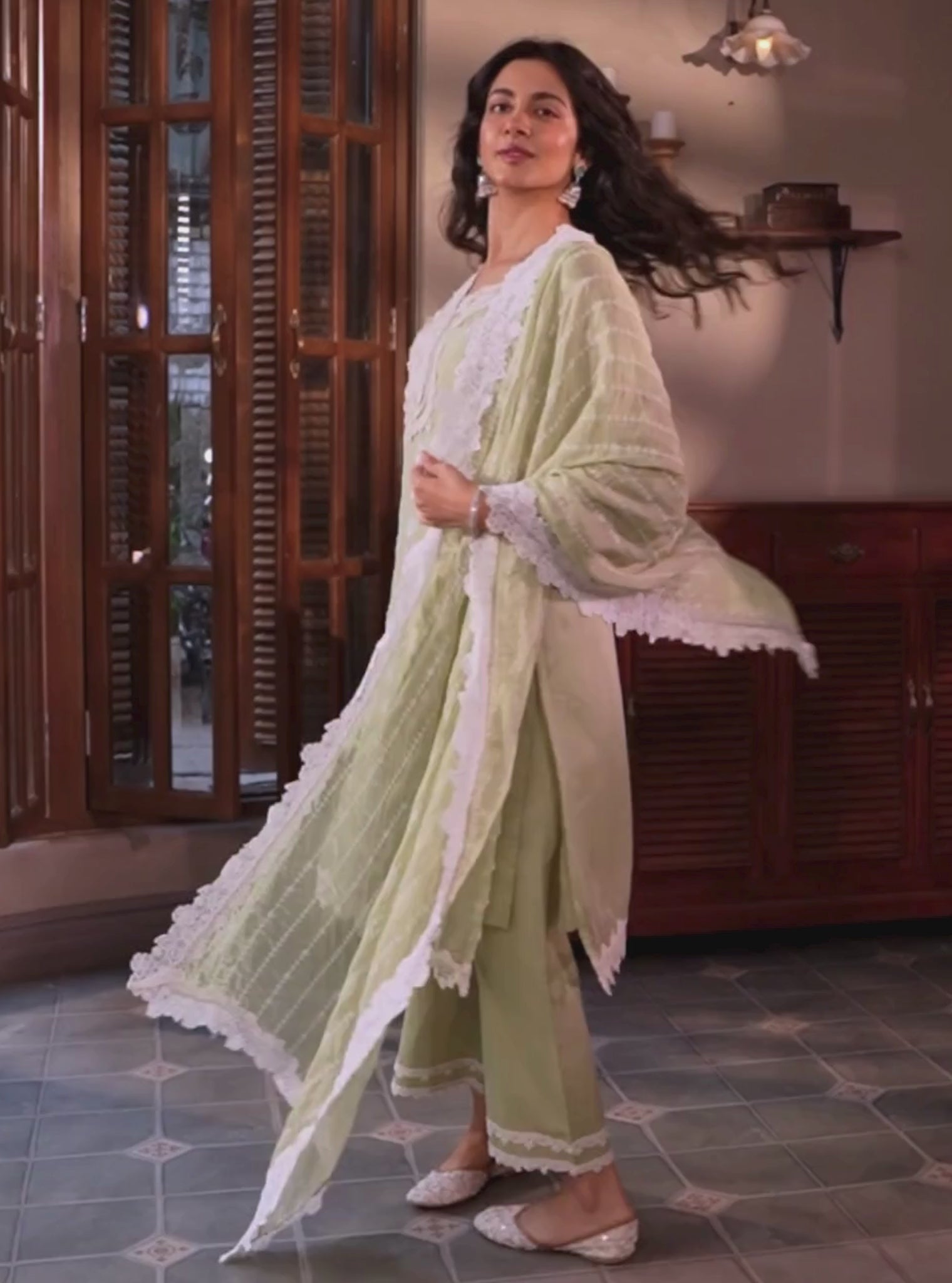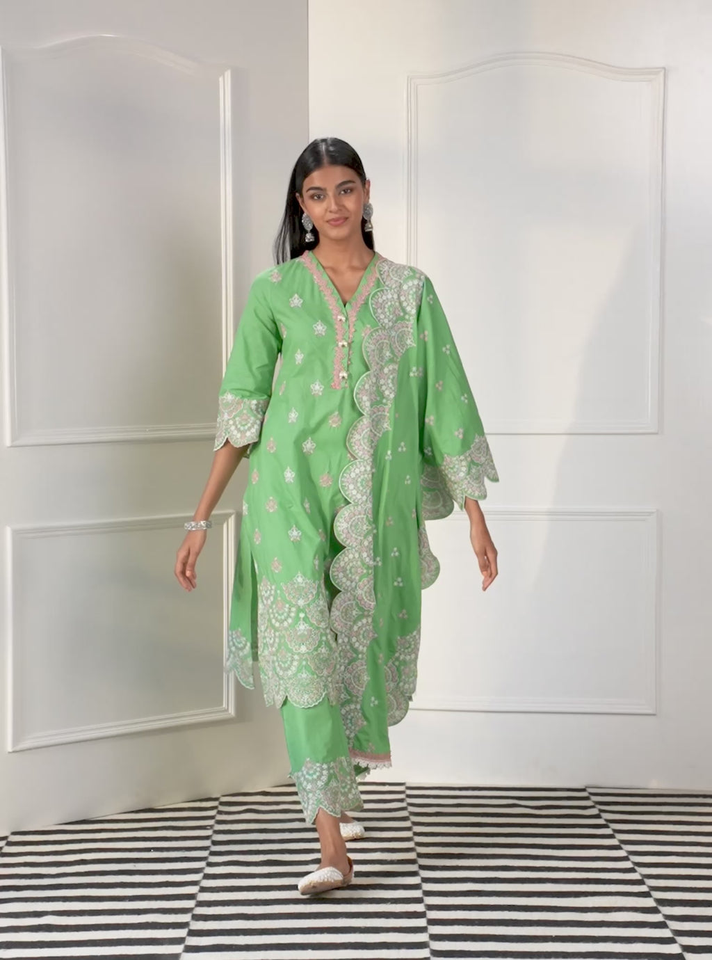 Ayla Supima Cotton Green Anarkali Kurta Set