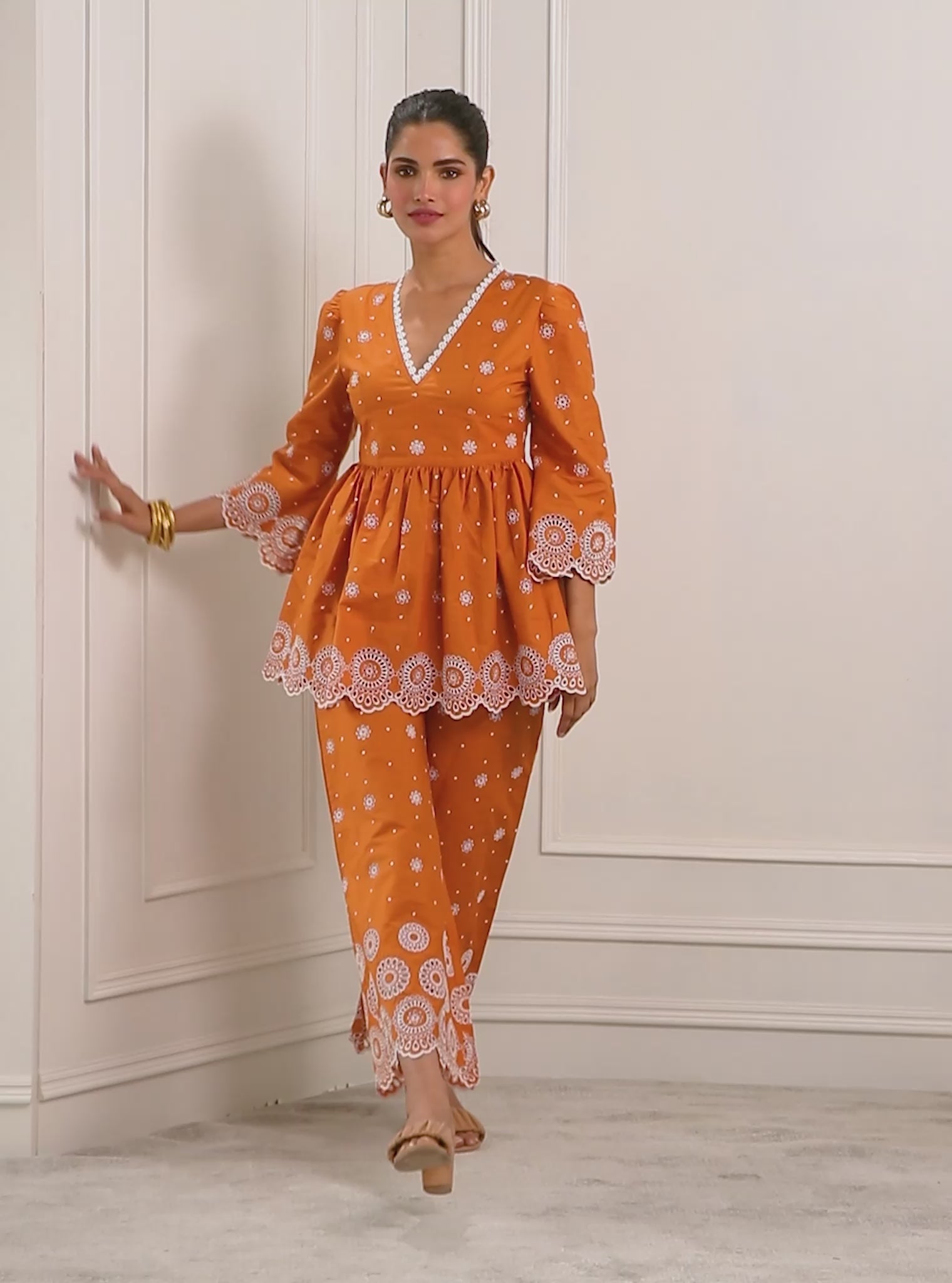 Aurelia Supima Cotton Orange Top with Bell Bottom Set