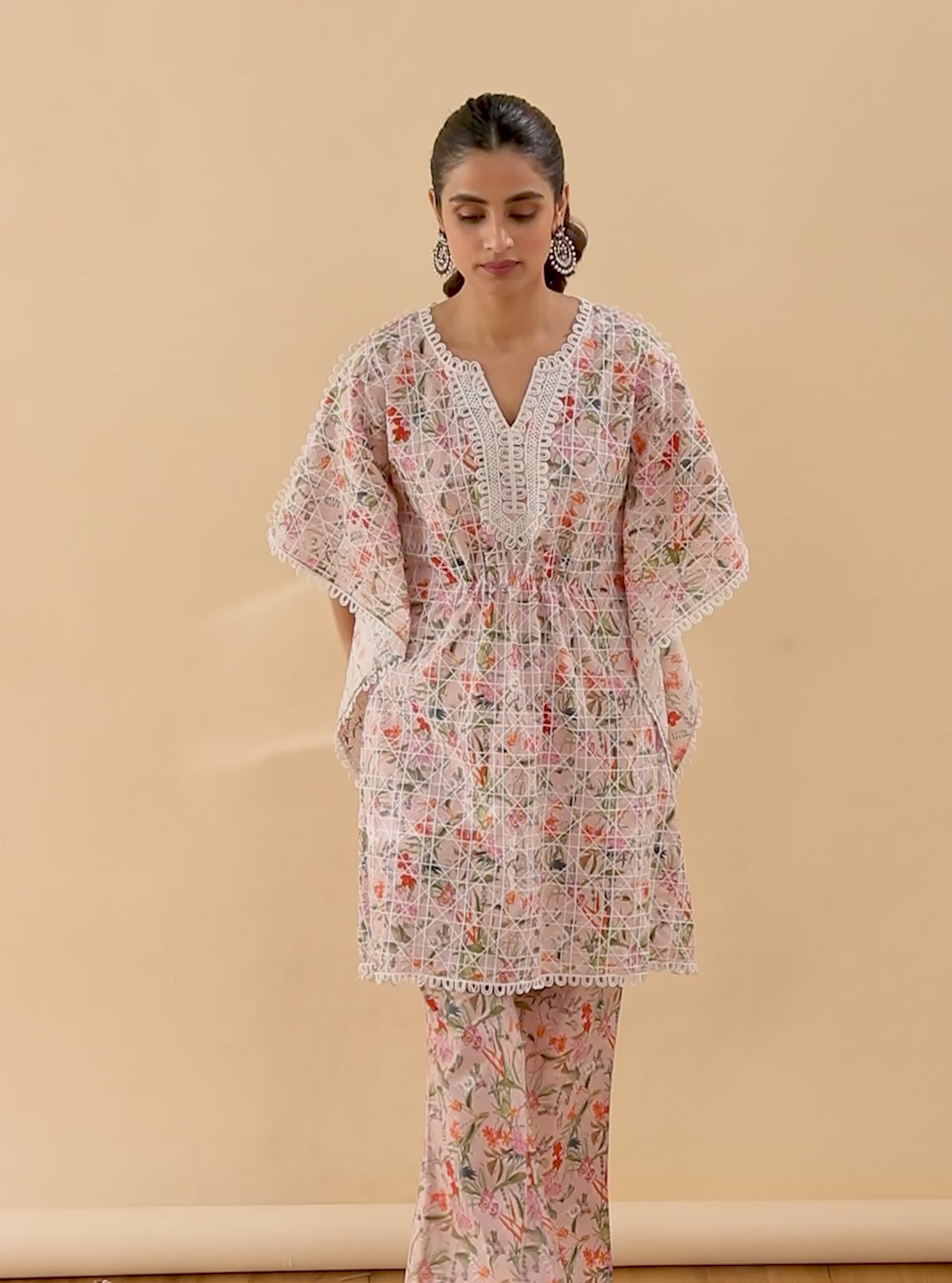 Keoni Supima Cotton Pink Kaftan With Keoni Pink Pant