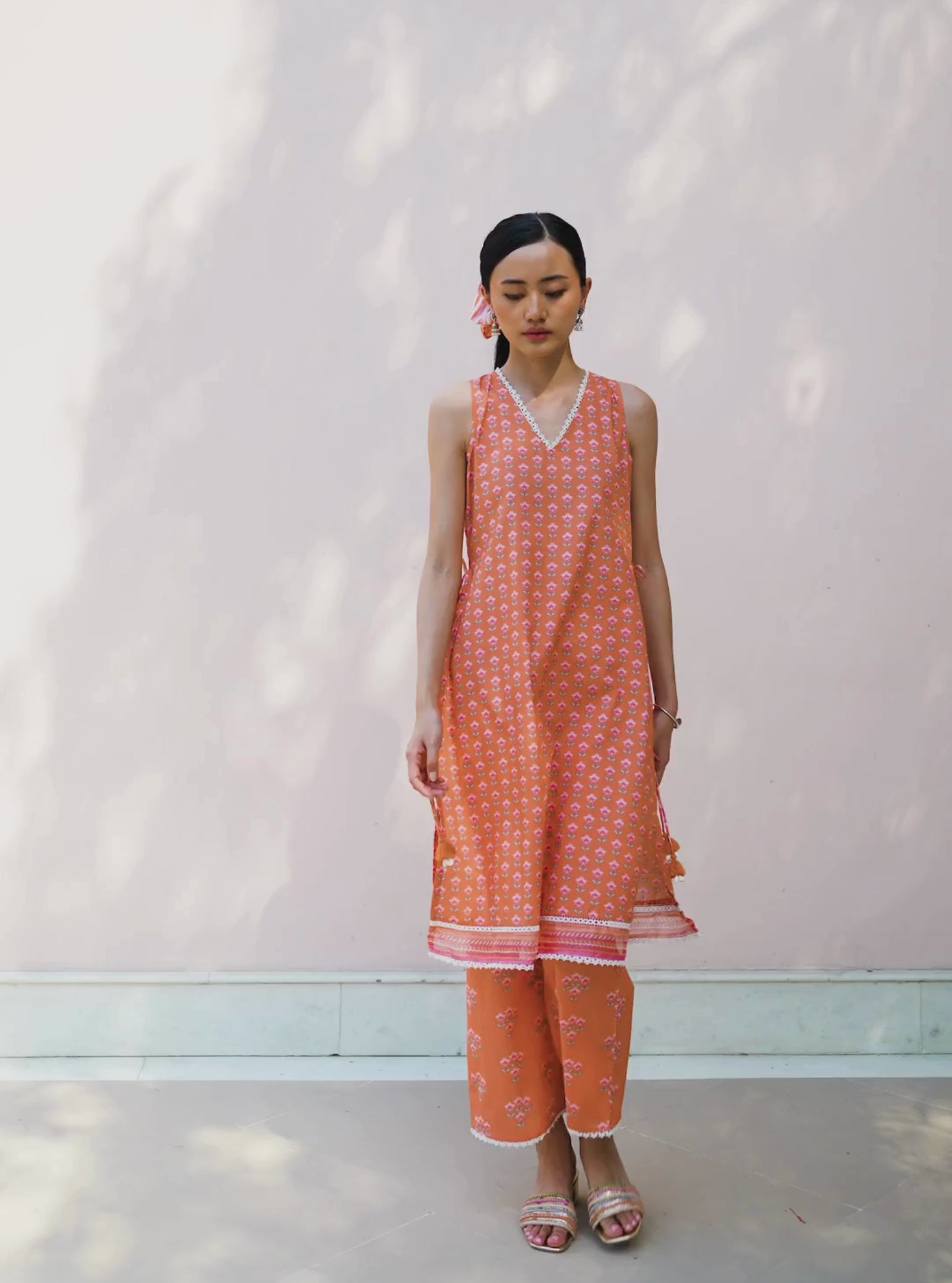 Rajvella Orange Mulmul Supima Cotton Kurta & Pant Set