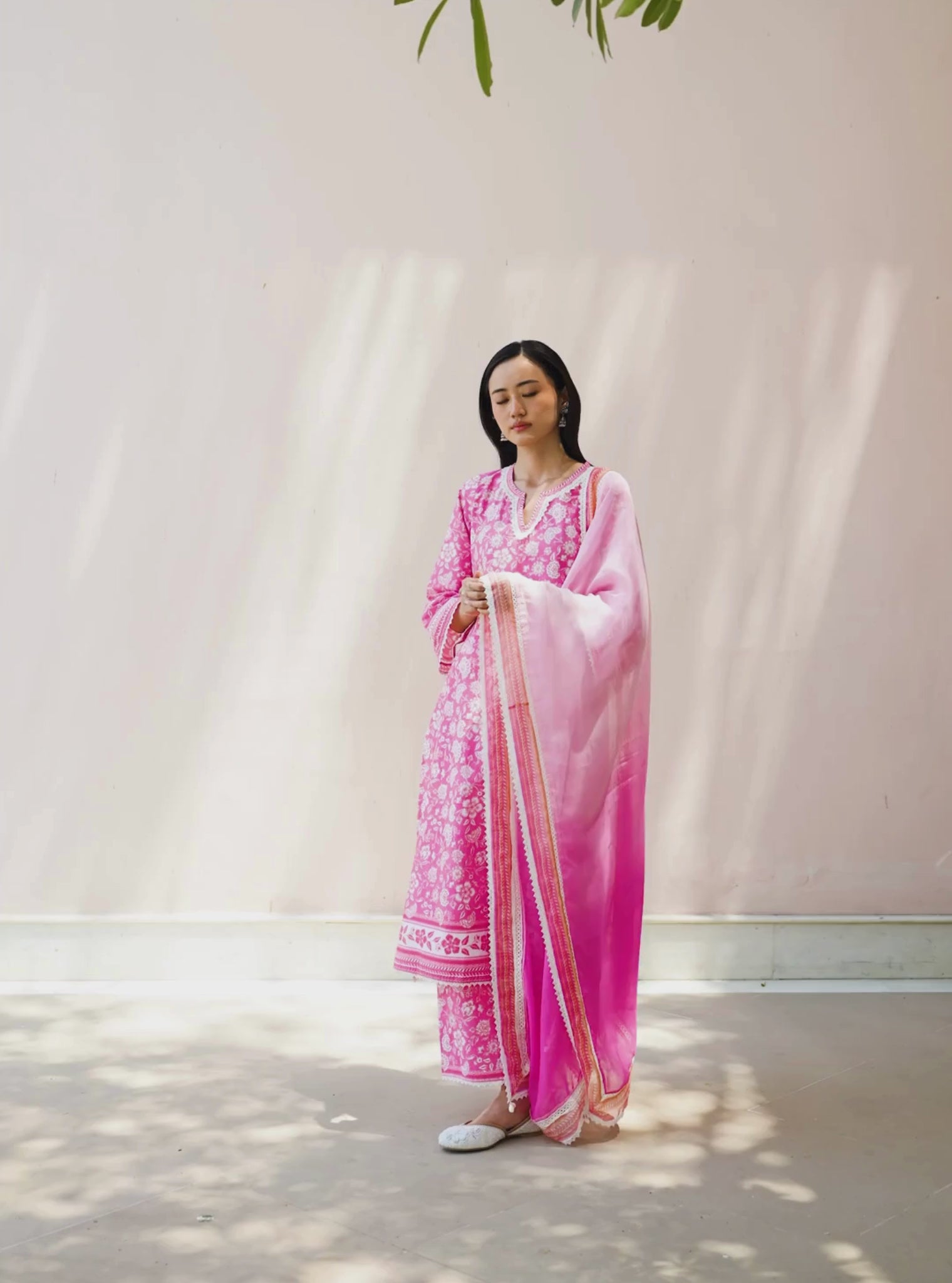 Rosabelle Rani Pink Mulmul Supima Cotton Kurta Set