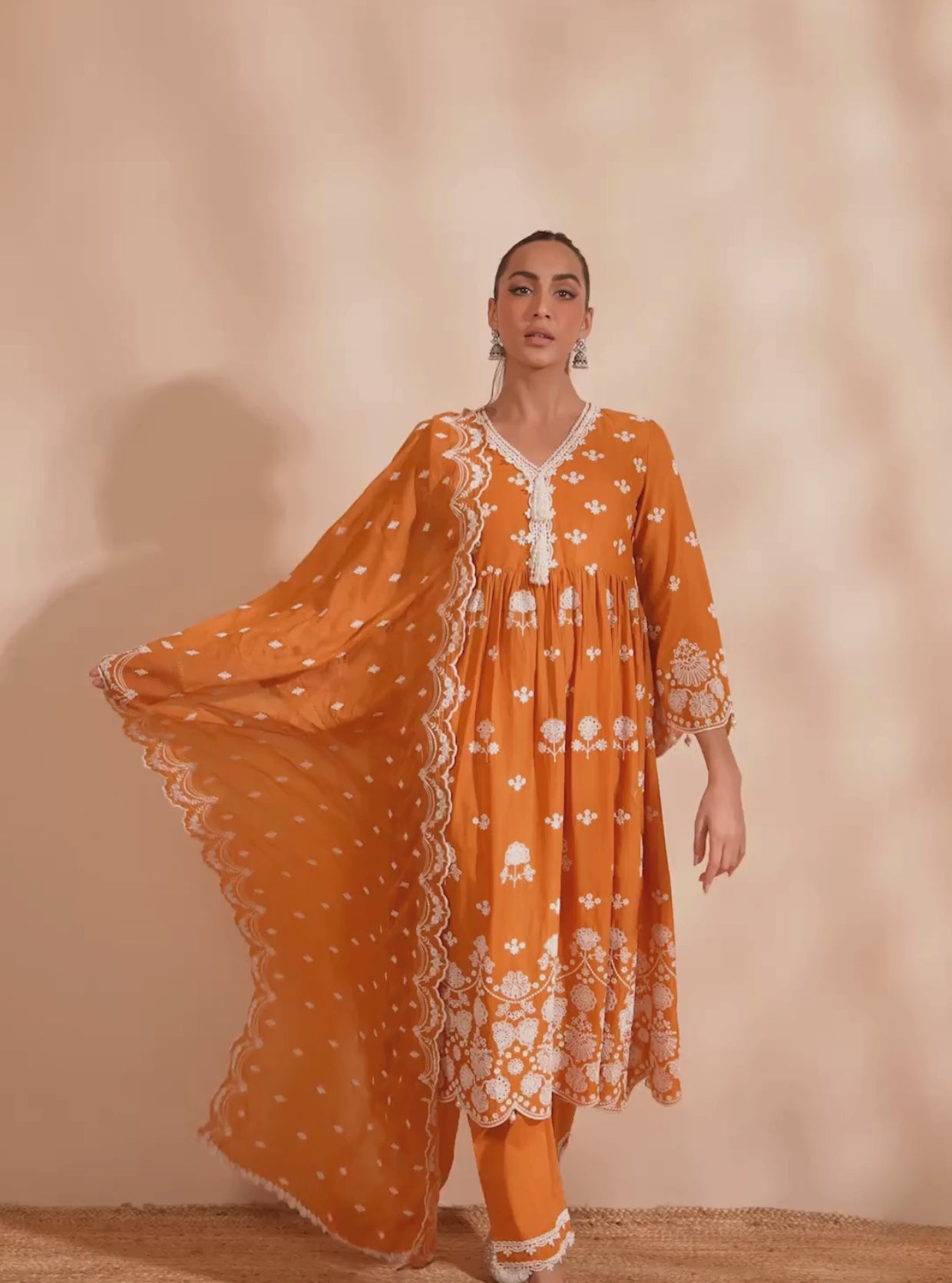 Nilan Supima Cotton Orange Anarkali Kurta Set