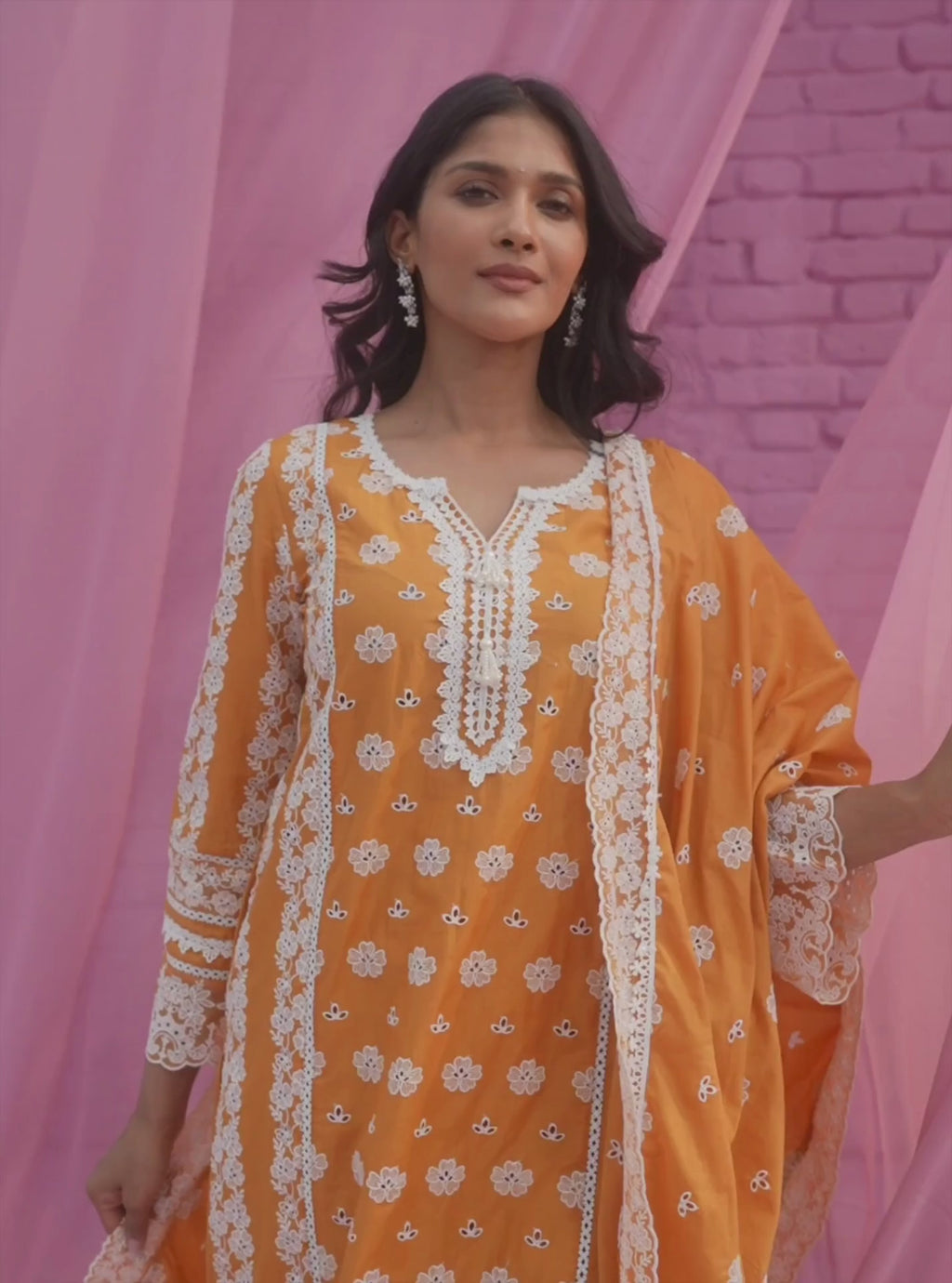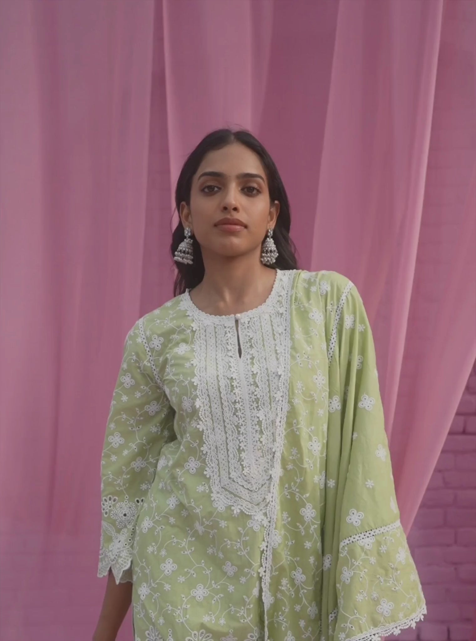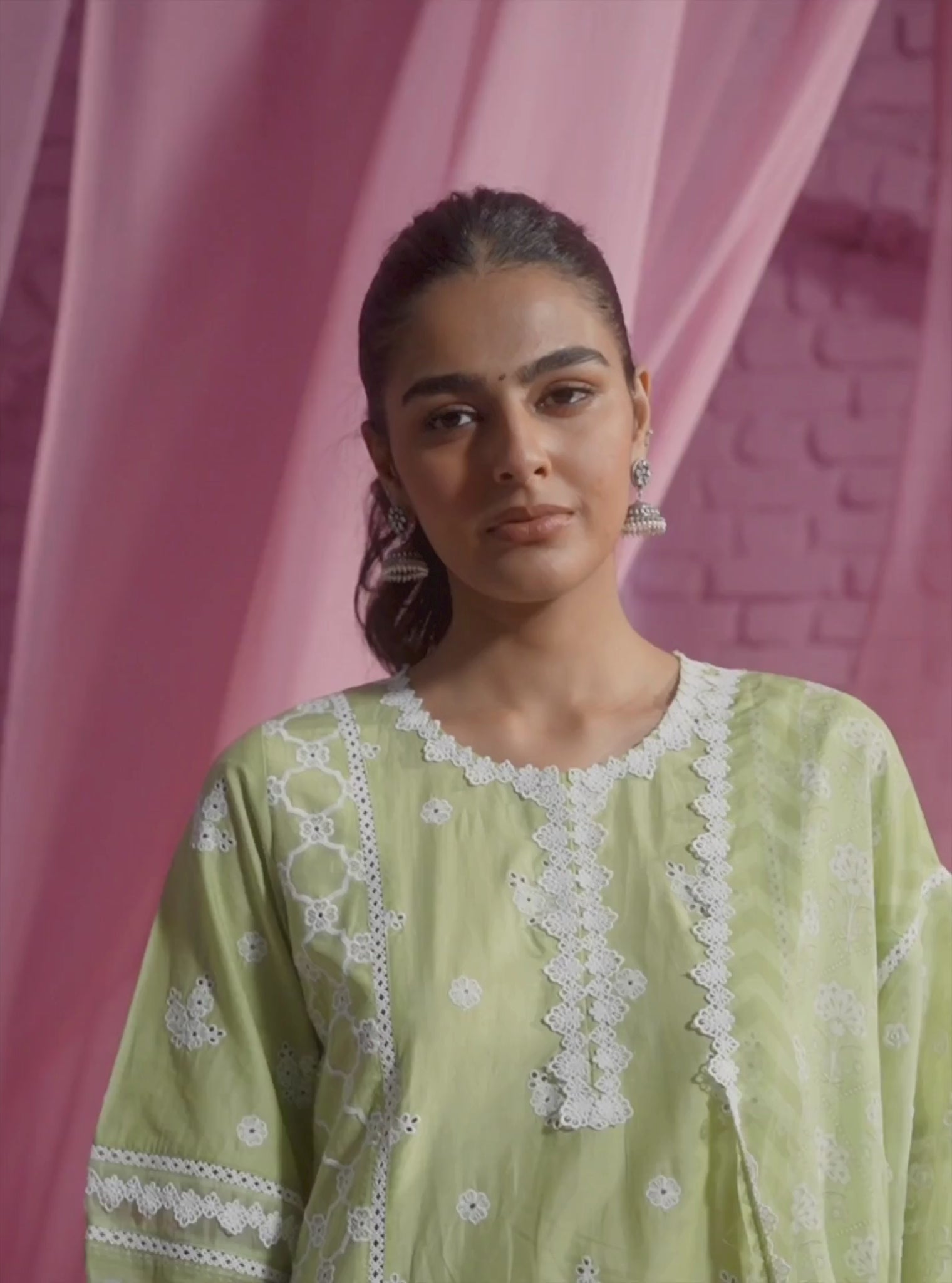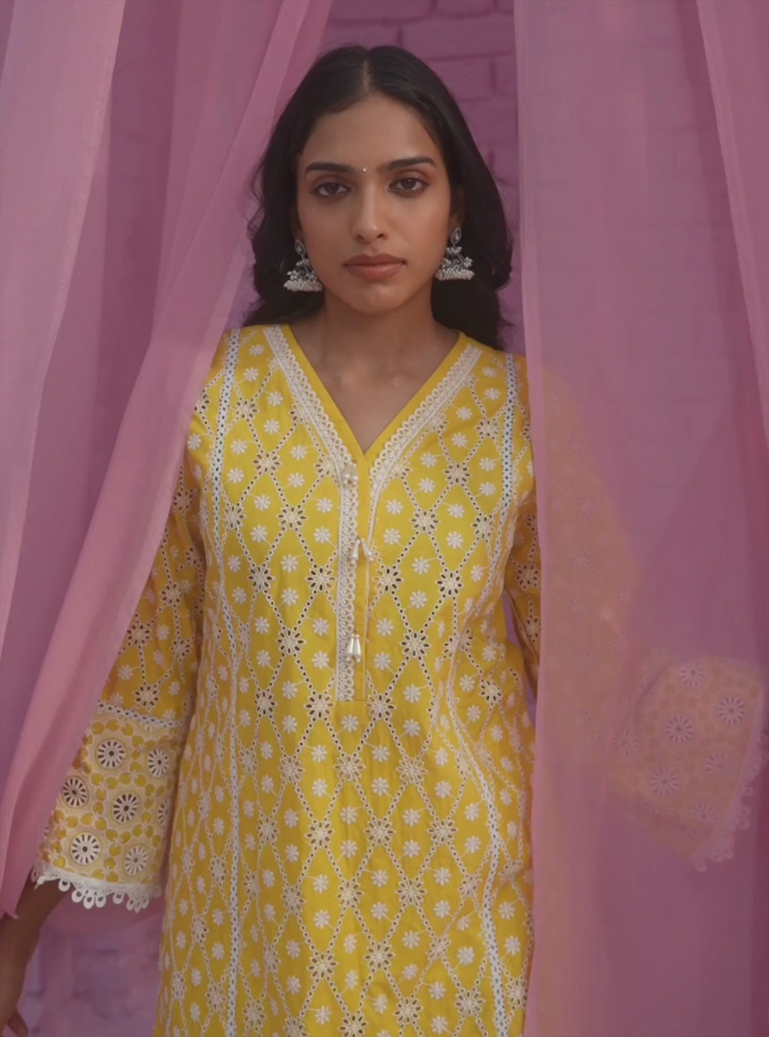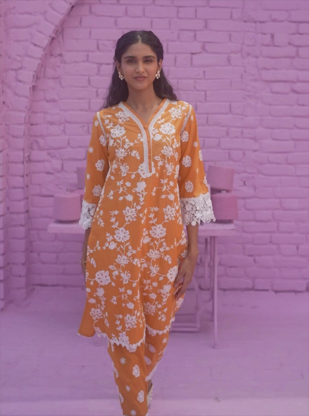All kurtas feature intricate embroidery work and delicate lace details. Expert attention to detail is obvious in the pearl detailings featured in some of the kurtas. With the quintessential Mulmul touch, they radiate timeless sophistication and delicate feminity,