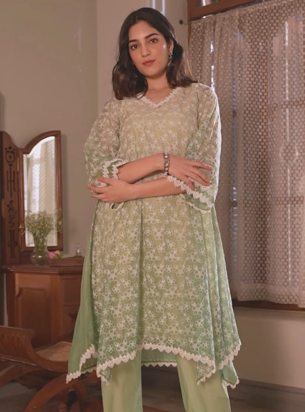 Edna Organza Green Kurta Set