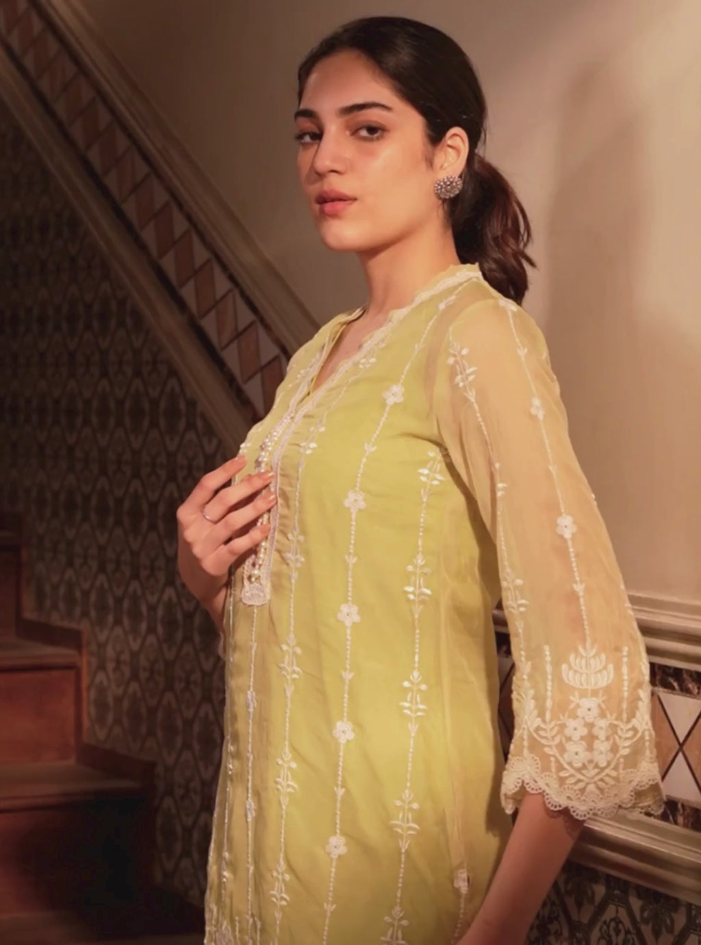 Nima Organza Lime Kurta Set