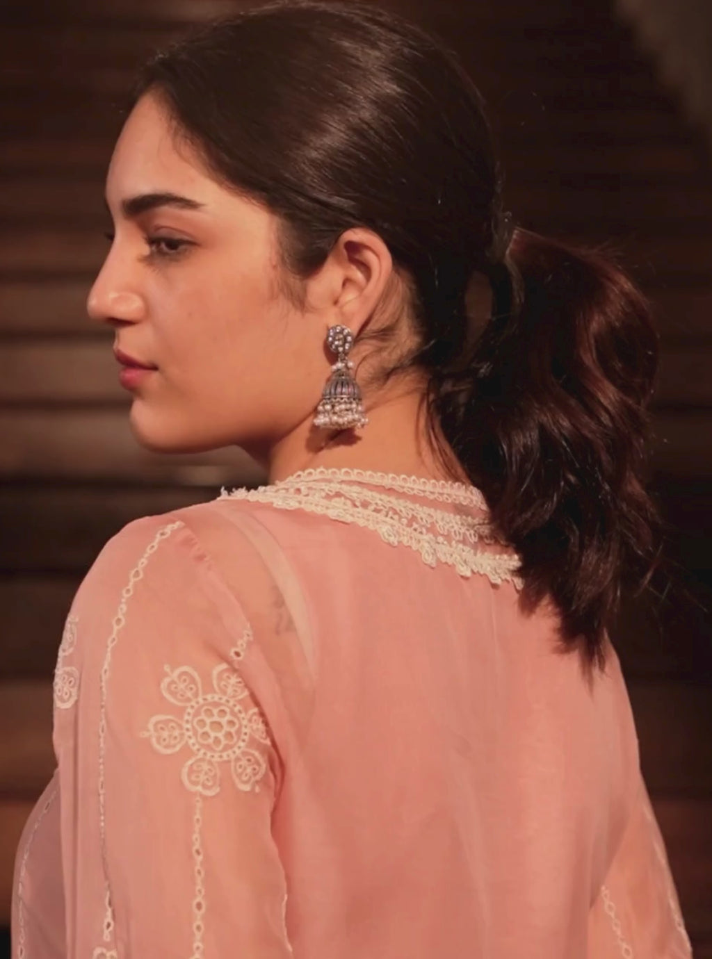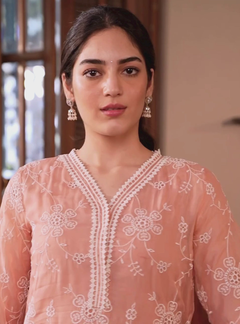 Nezira Organza Peach Kurta Set