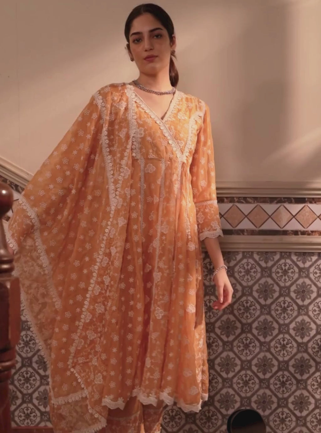 Nisrina Organza Orange Kurta Set