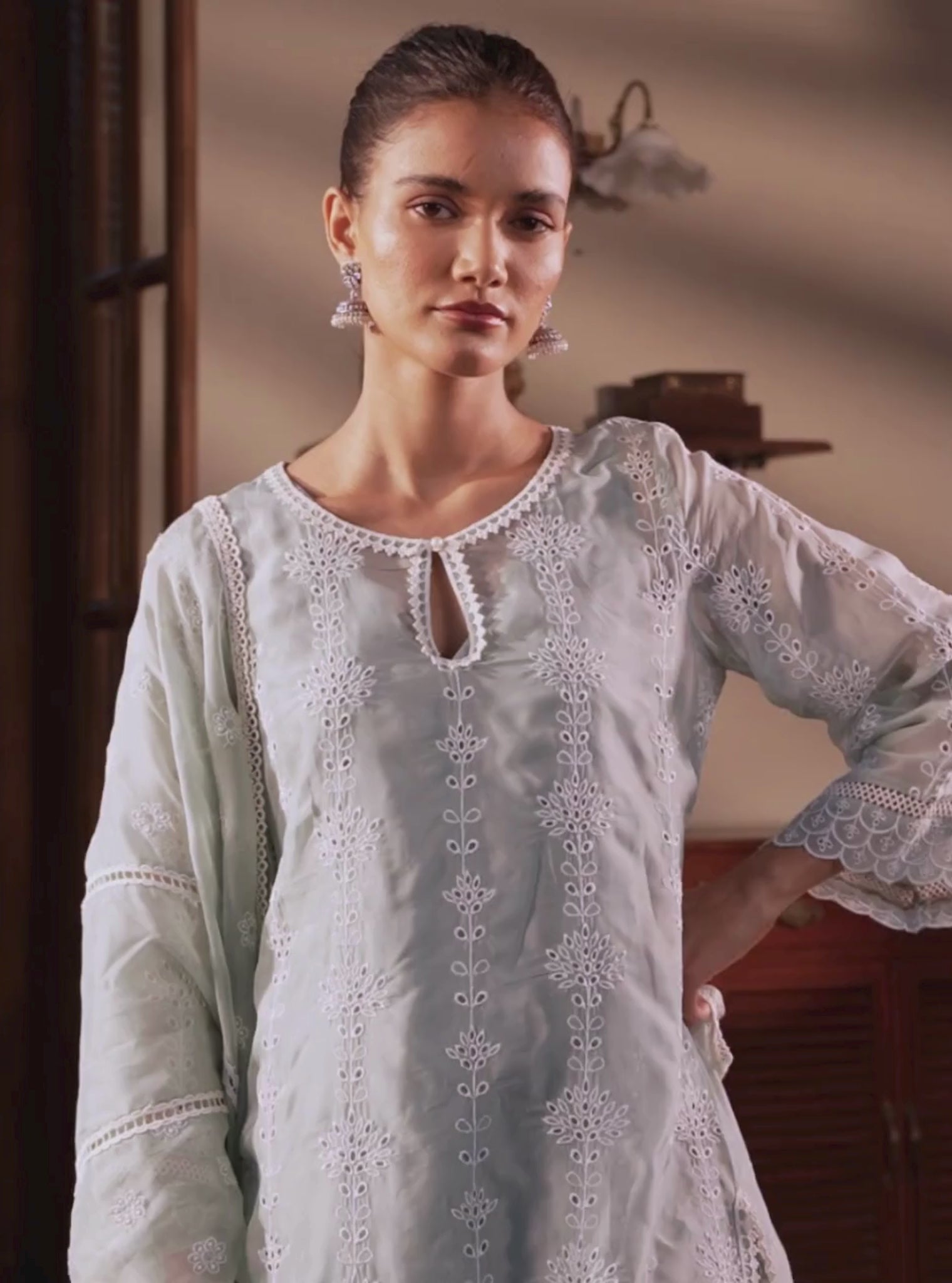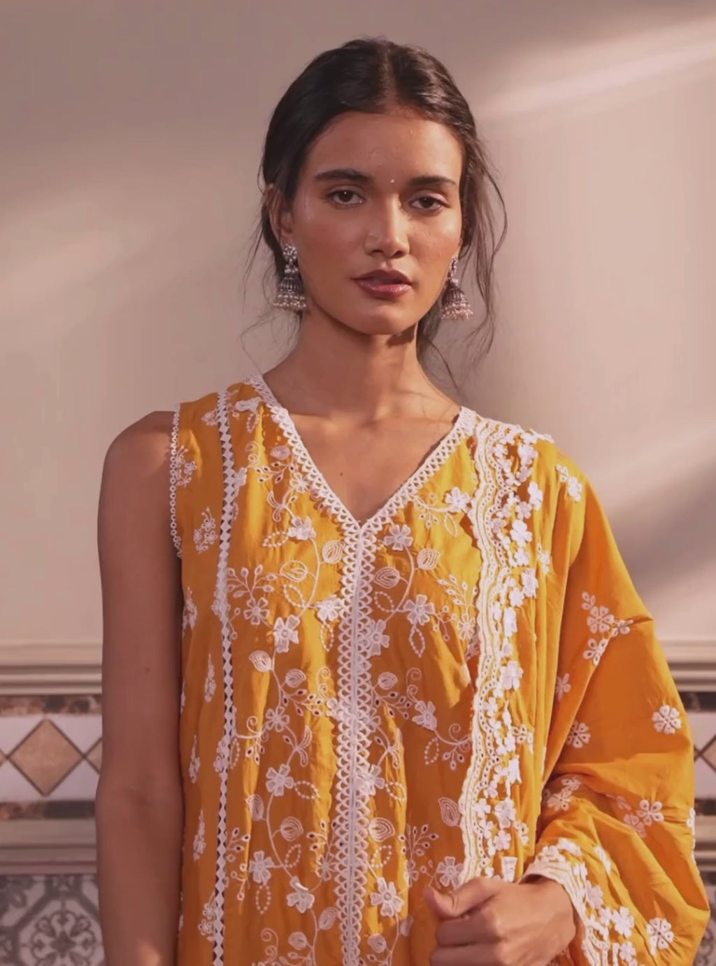 All kurtas feature intricate embroidery work and delicate lace details. Expert attention to detail is obvious in the pearl detailings featured in some of the kurtas. With the quintessential Mulmul touch, they radiate timeless sophistication and delicate feminity,