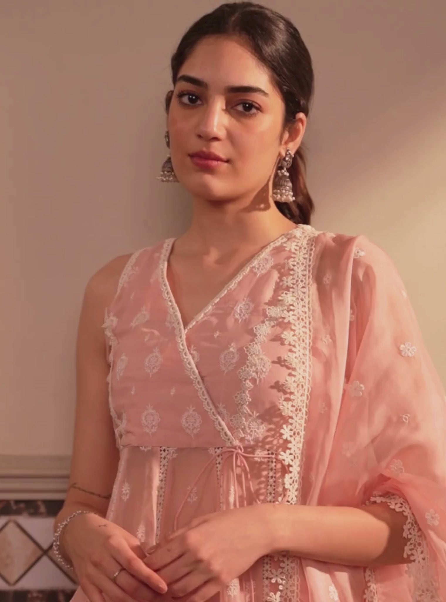 Badra Organza Pink Anarkali Set