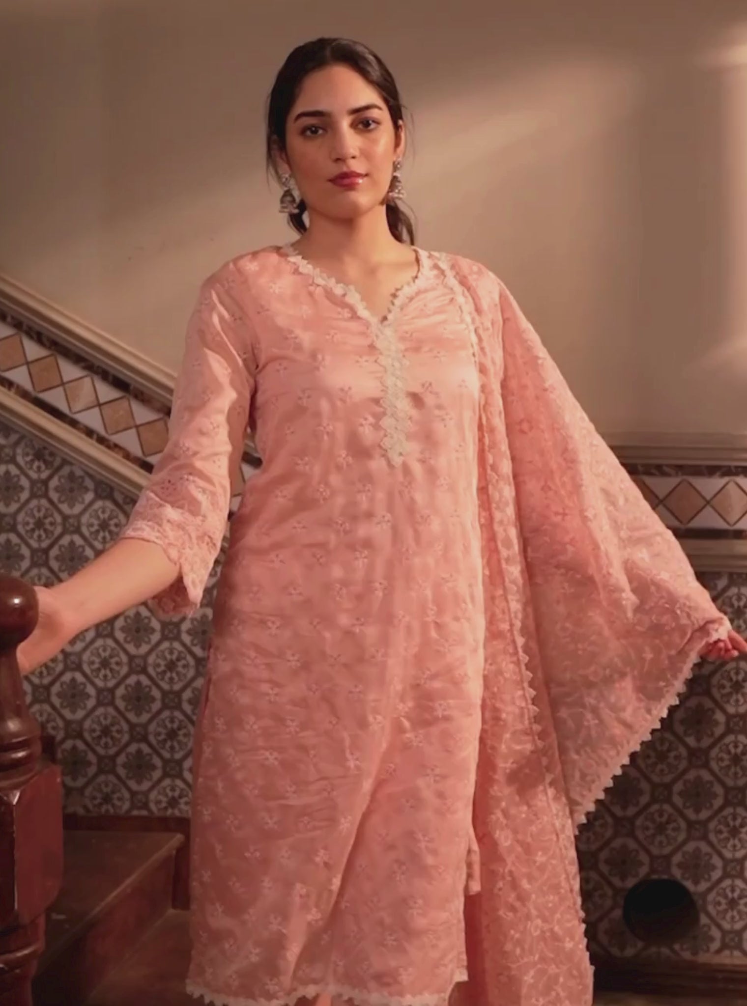 Bita Organza Pink Kurta Set