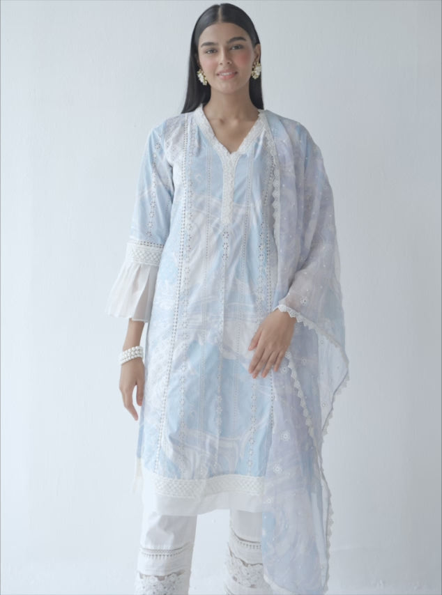 Carrara Supima Cotton Blue Kurta Set