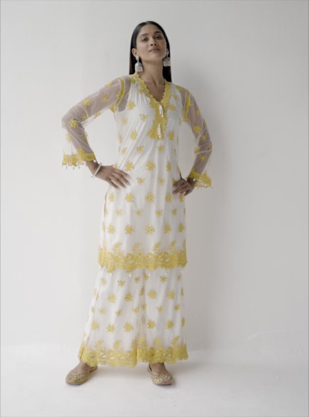 Glenn Net White Kurta with Palazzo Set