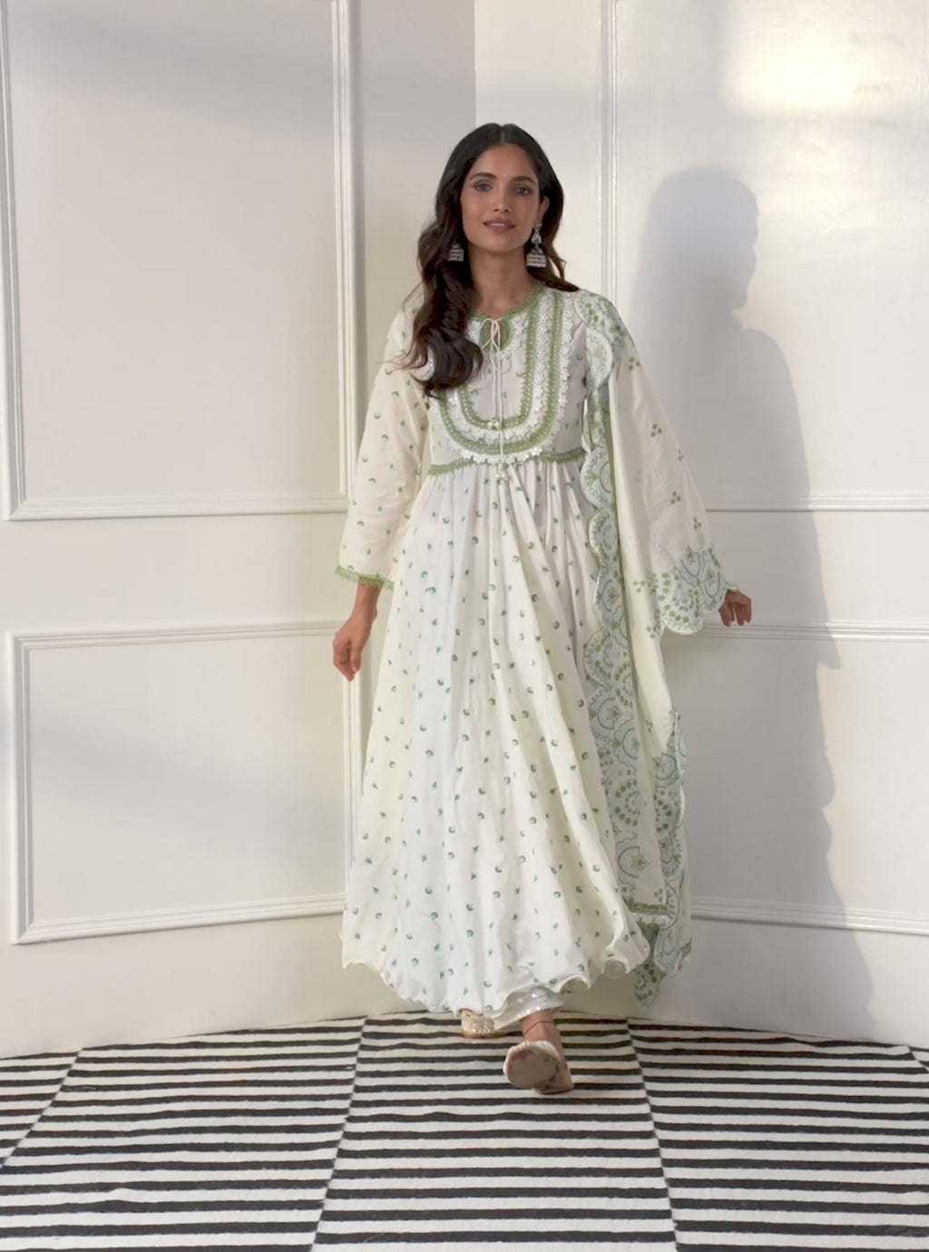 Nadine Supima Cotton White Anarkali Kurta Set