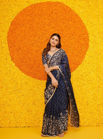 Jigar Organza Navy Saree