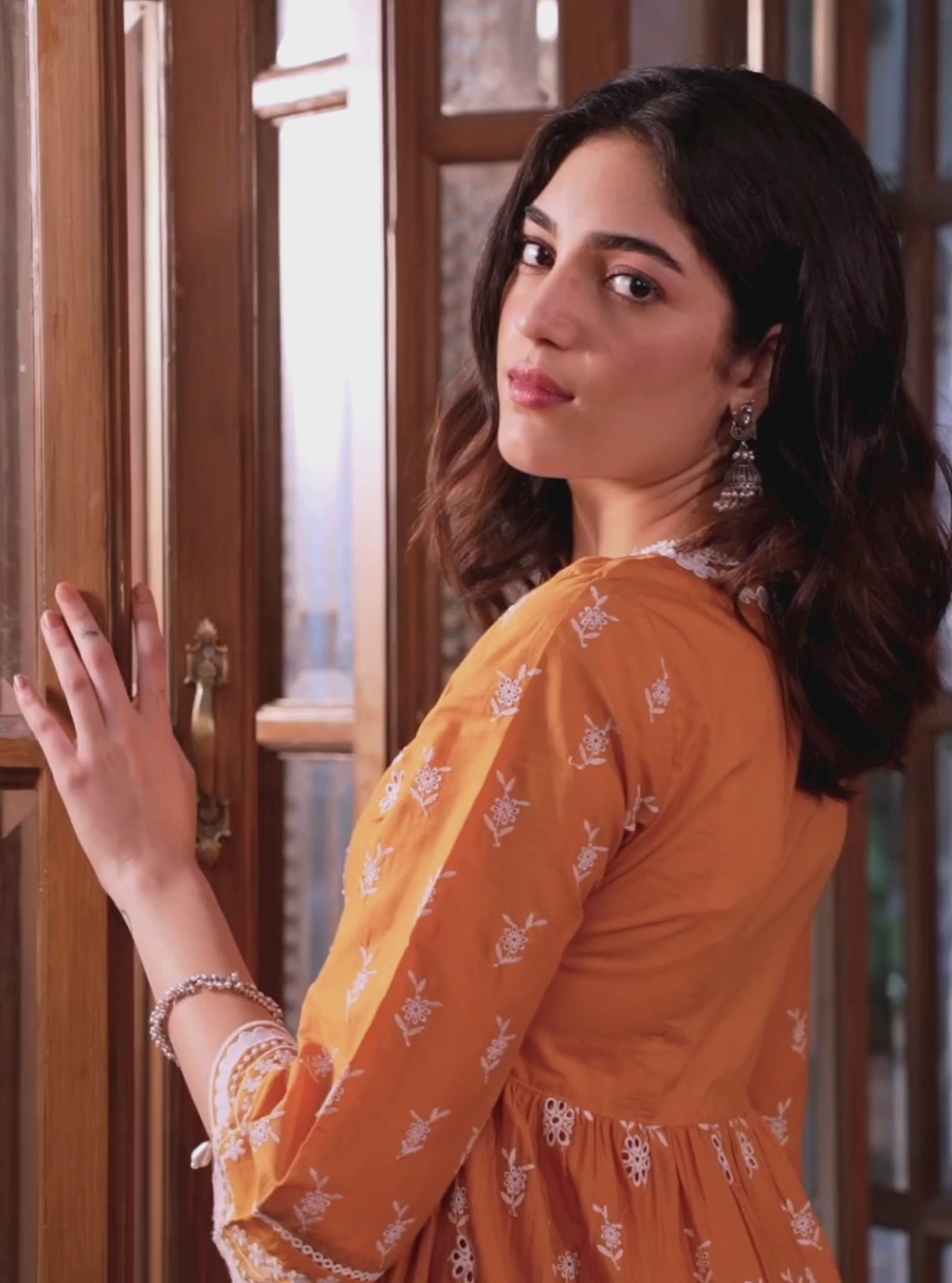 Complete The Ensemble With The Matching Orange Dupatta, Echoing The Scalloped Hem And White Floral Detailing For A Harmonious Finish.