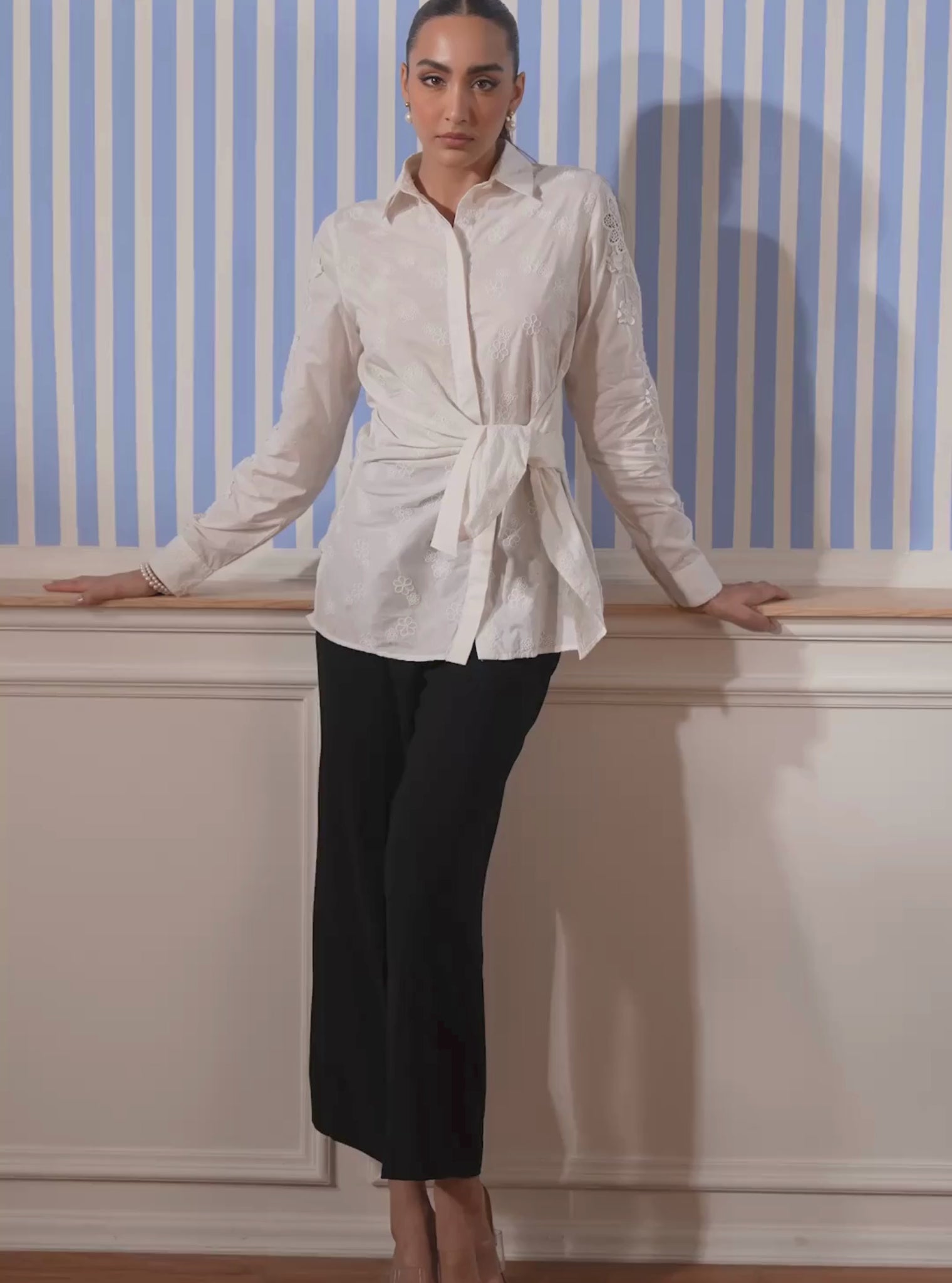 A Modern Classic With A Romantic Twist. This White Shirt Is Elevated With Delicate Embroidered Motifs Scattered Gracefully Across The Fabric, While Its True Charm Lies In The Unique Wrap-Around Detail That Cinches The Waist With A Soft Tie??Adding Structure, Femininity, And A Hint Of Drama.