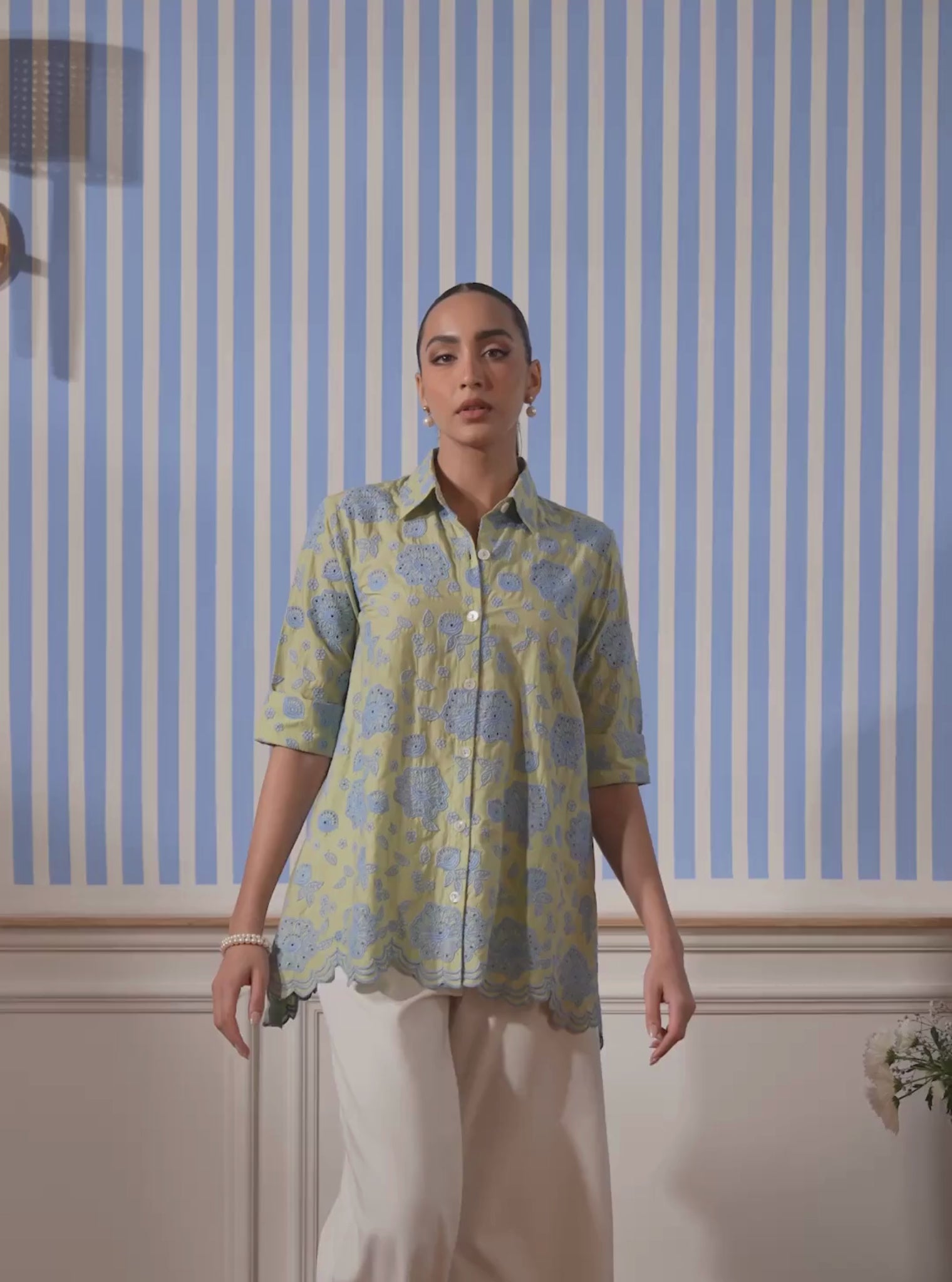 Say Hello To Easy Elegance In This Blooming Beauty! Drenched In Refreshing Hues ¶and Adorned With Delicate Embroidery, This Shirt Is Your Everyday Escape Into Charm And Comfort.
