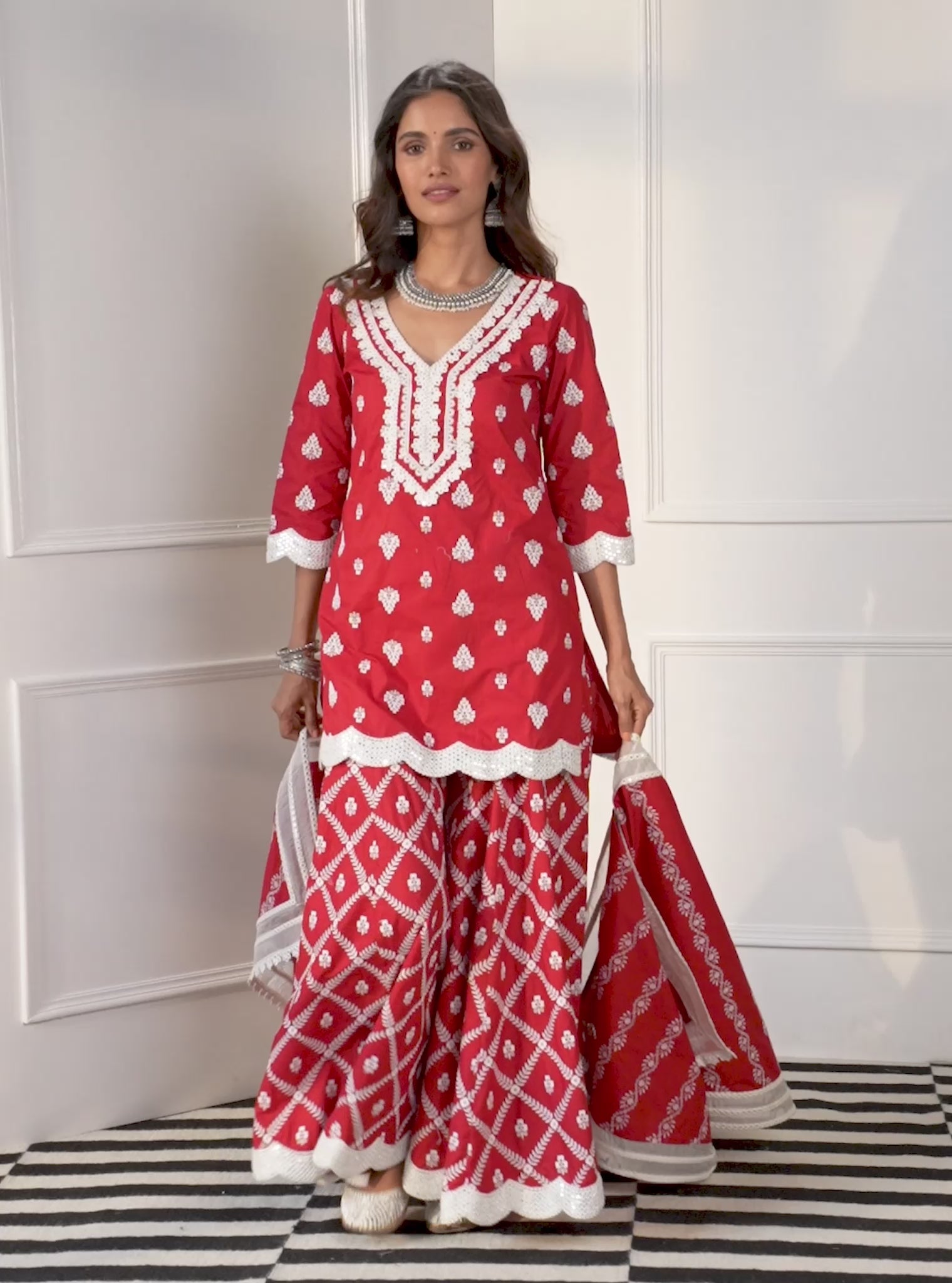 Zoriana Supima Cotton Red Kurta with Sharara Set
