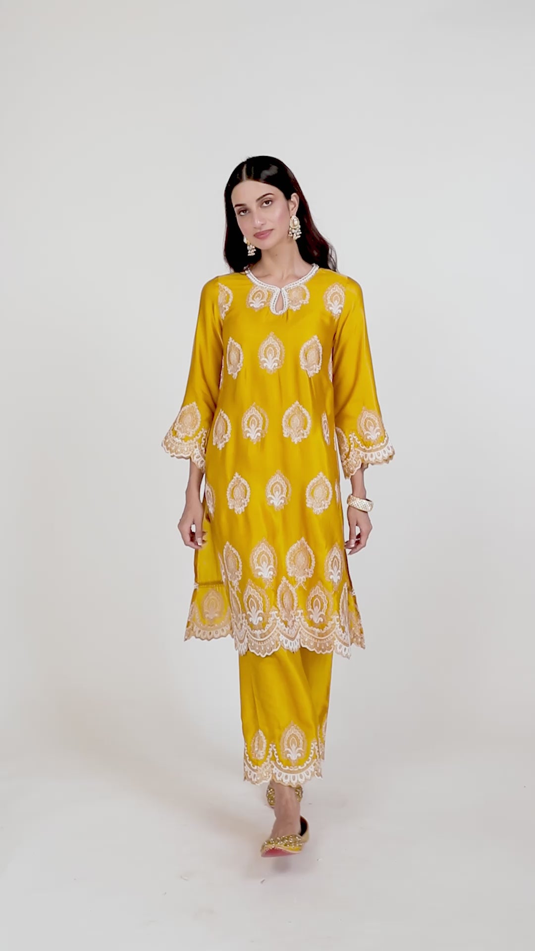 Mulmul Cupro Silk Sydney Mustard Kurta With Sydney Mustard Pant