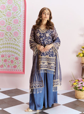 Paired With Wide-Legged Sharara Pants In Matching Pink, The Silhouette Offers Both Comfort And Statement-Making Elegance. The Dupatta Matches The Kurta'S Rich Embroidery And Fringe Accents, Creating A Cohesive And Opulent Look.