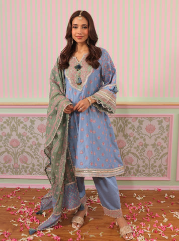 Unapologetically Festive And Beautifully Bold, This Deep Red And Orange Embroidered Suit Is An Exquisite Ensemble For Intimate Wedding Moments And Vibrant Rituals. The Deep Red Kurta Features Intricate Threadwork In Rich Tones, While The Contrasting Orange Yoke Panel Adds A Dash Of Traditional Vibrance. Scalloped Lace Detailing On The Sleeves And Hemline Heightens Its Ethnic Charm. The Ensemble Is Completed With Solid Red Trousers And A Beautifully Embellished Orange Dupatta With Zari Motifs And Chevron BordersPerfectly Balancing Tradition With Visual Drama.