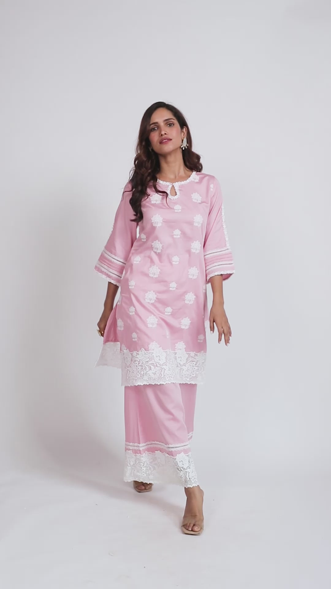 Flora Embroidered Organza Hemline On Kurta And Paired Bottom